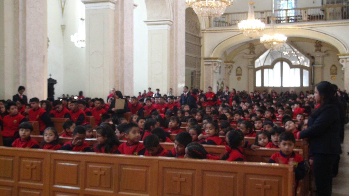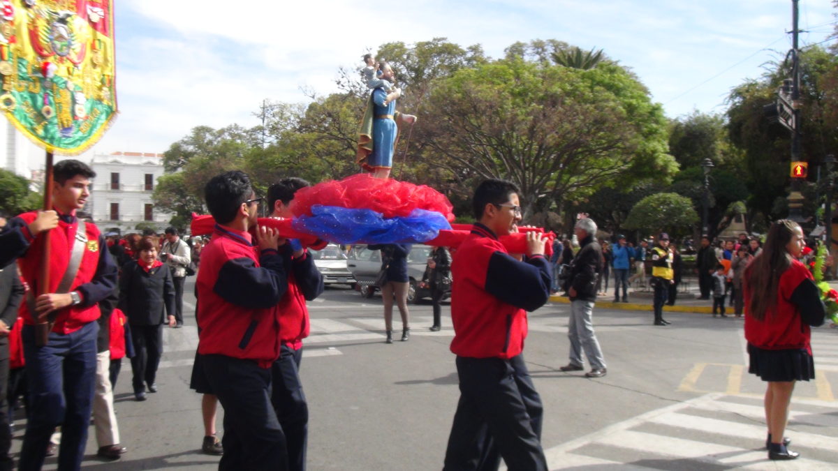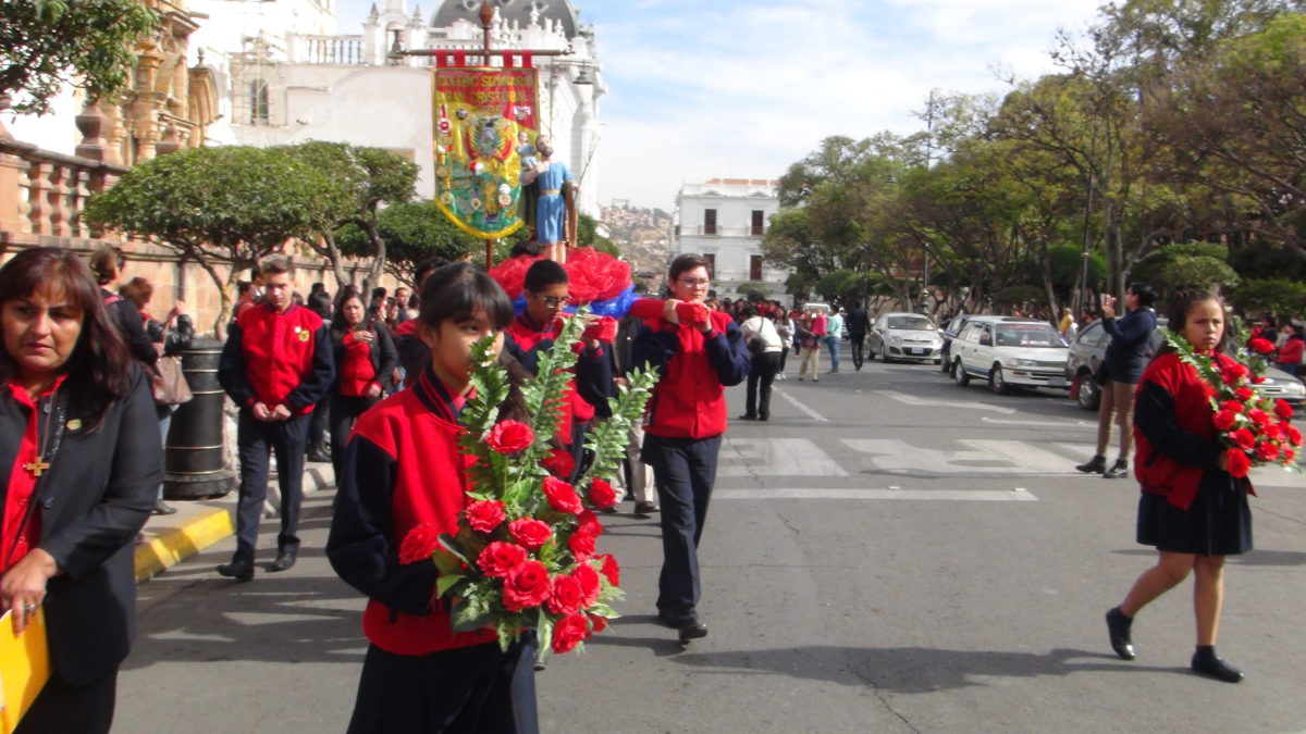 Arquidiócesis de Sucre 28.07.18//CENACOM//El Arzobispo de Sucre Monseñor Jesús Juárez Párraga presidió la eucaristía en la Catedral Metropolitana en honor al aniversario número 423 del Colegio San Cristóbal, el día 27 de Julio a hrs. 09:00am con la presencia de estudiantes, plantel docente y administrativo, posterior a la celebracion eucaristica, los estudiantes junto al plantel docente y administrativo salieron en un desfile por plaza 25 de Mayo.