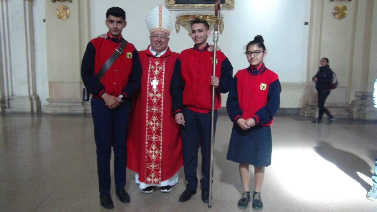 “Muy buenos días a todos, en representación de todas las Unidades Educativas Católicas, privadas y de convenio queremos sumarnos a estos 423 años que cumple La Unidad Educativa San Cristóbal, en mi condición de delegado y como ex alumno de este prestigioso colegio quiero felicitarles al plantel docente administrativo y a todos los alumnos en general, que Dios les bendiga y el santo Patrono San Cristóbal siempre les ilumine en este trabajo tan importante de formación integral y recalcar que también se hace bastante trabajo en el tema pastoral de la formación de valores que tanta falta hace en esta coyuntura a nivel nacional e internacional. Nuevamente felicidades al Director espiritual al Padre Hennry, y a todos los Colegios del Arzobispado, gracias Monseñor por esta hermosa Eucaristía y a todos en general”. Agregó el delegado de la CEIL Hugo Centellas