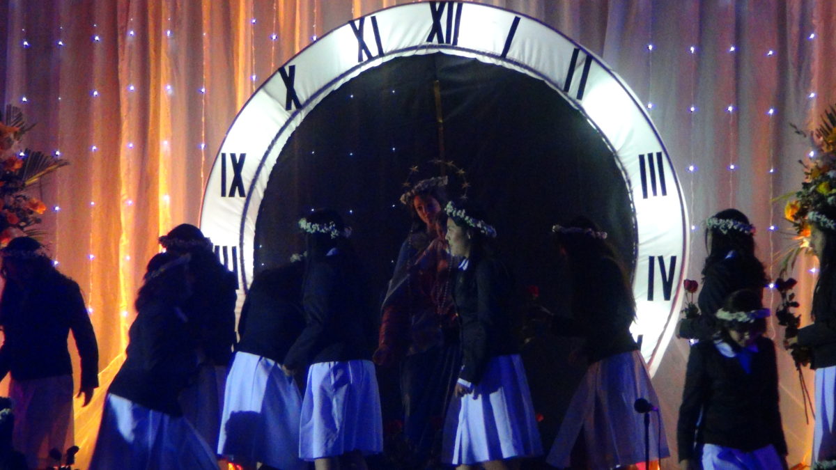 La ambientación y el armado del altar estuvieron a cargo de las alumnas de la promoción 2018 con la temática de tiempo, evocando el nombre de la promoción que es “TEMPUS” que significa tiempo en latín.