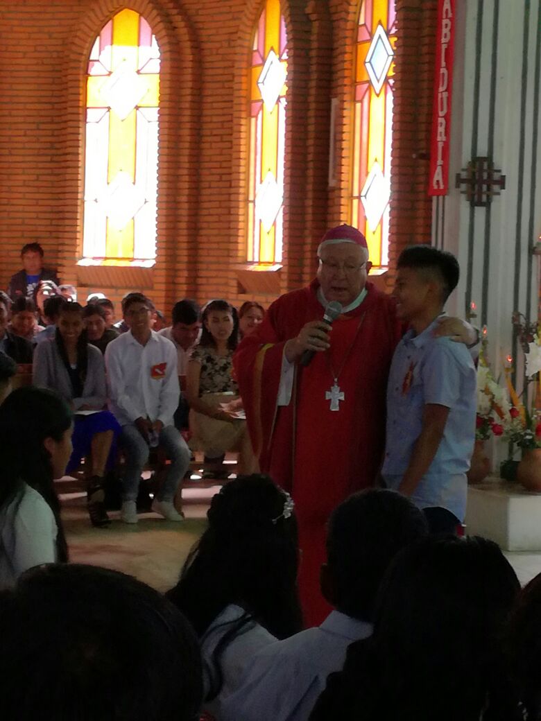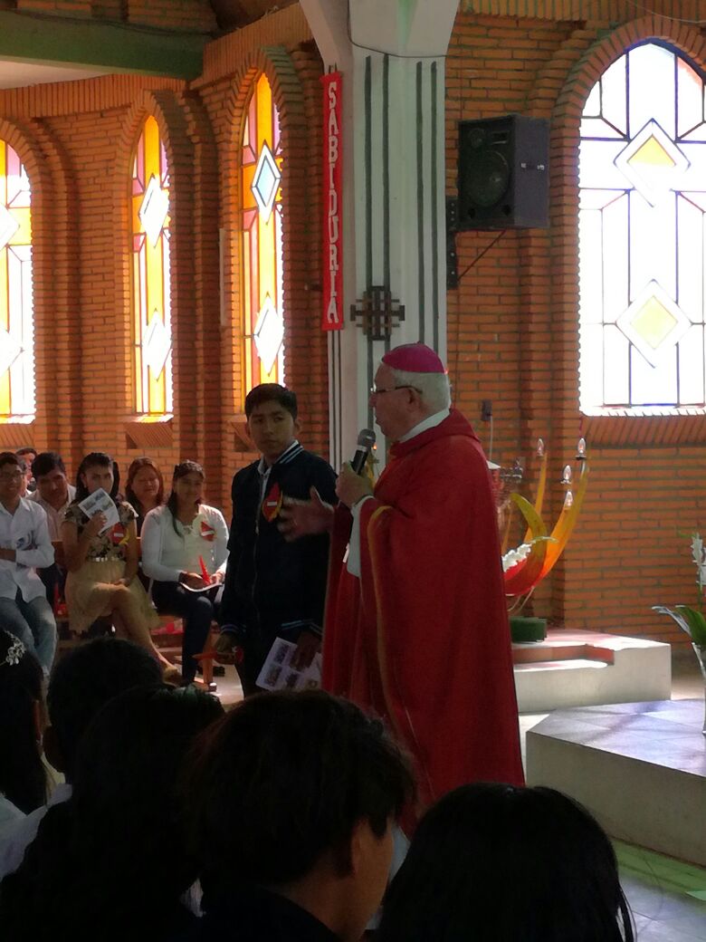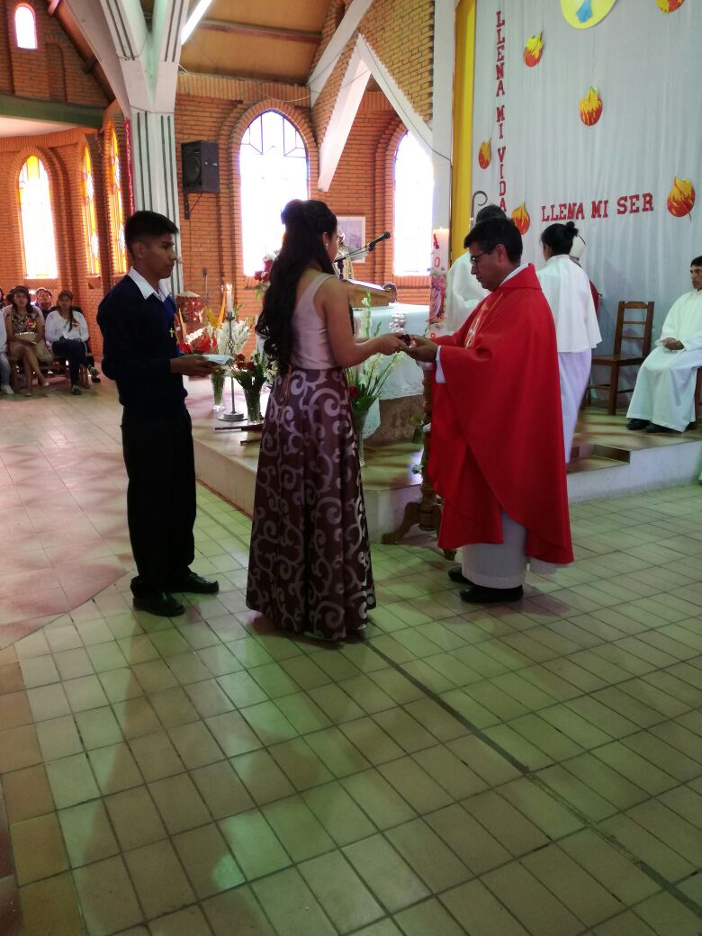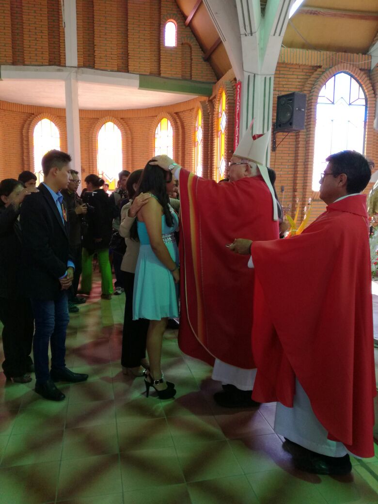 Arquidiocesis de Sucre 22.05.2018//En la Solemnidad de Pentecostés alrededor de 90 jóvenes confirmaron su fe en la Parroquia Sangrada Familia, una Eucaristía presidida por Mons. Jesús Juárez Arzobispo de Sucre acompañado por Andrés Fernández, Párroco.