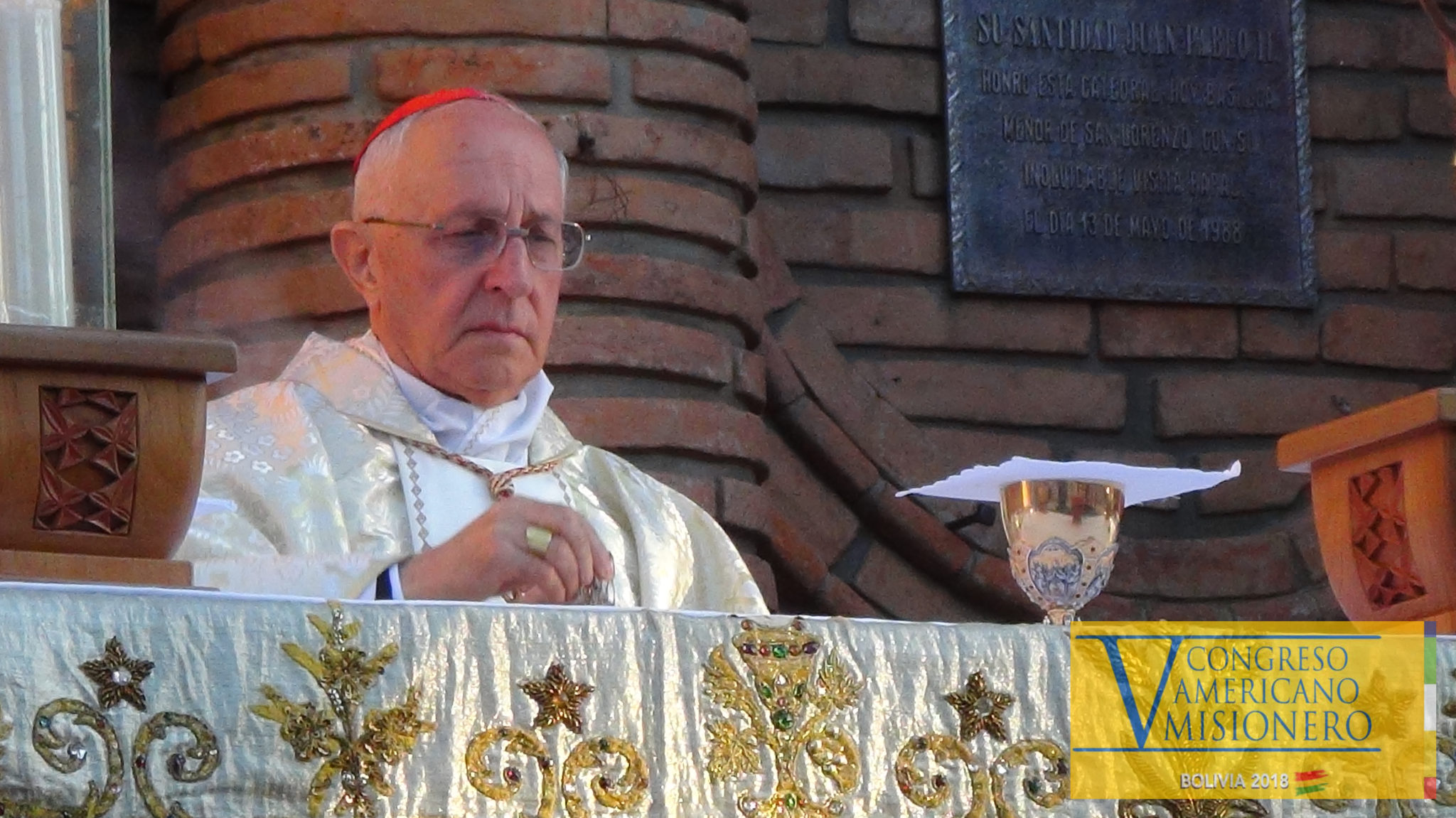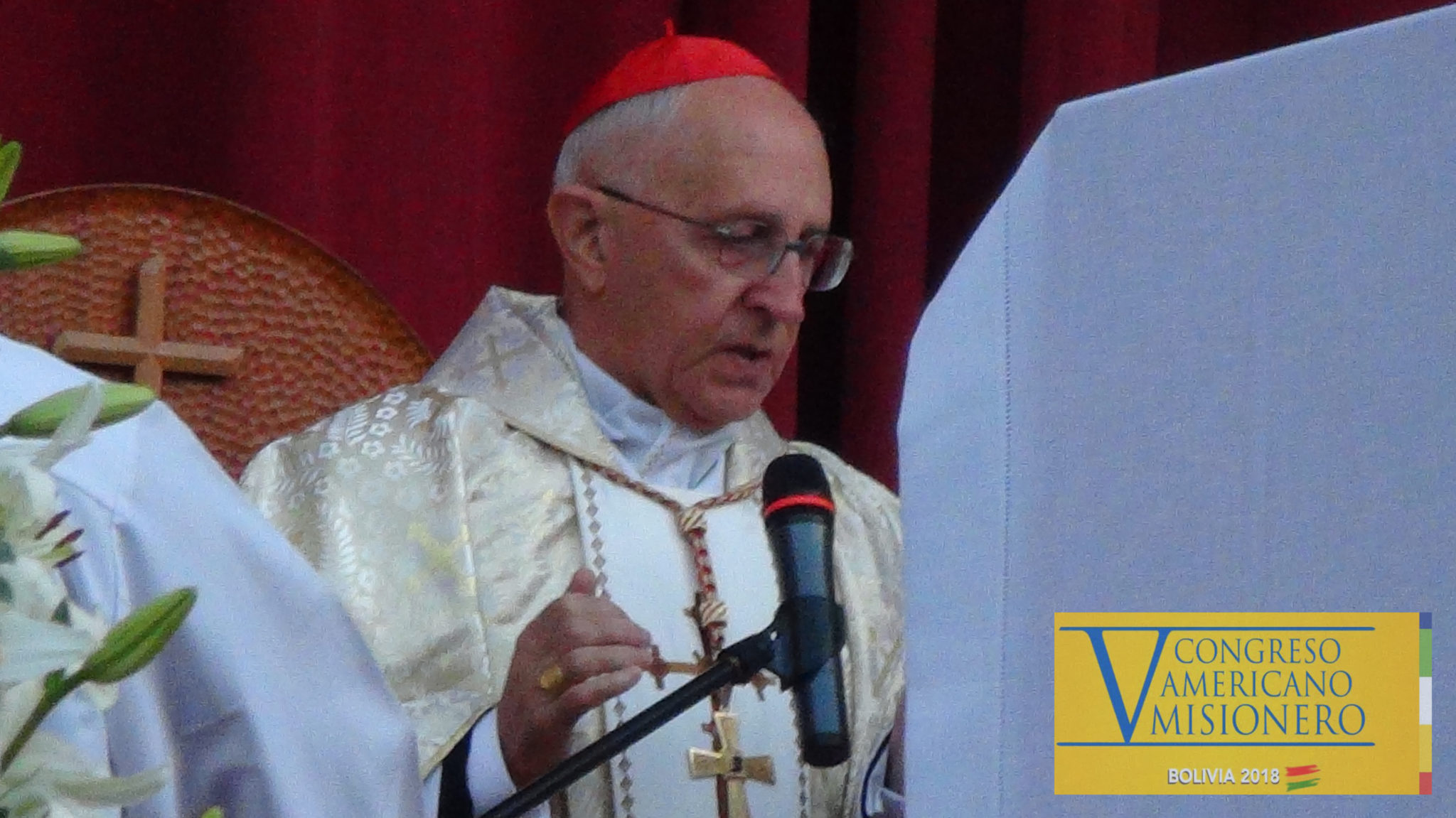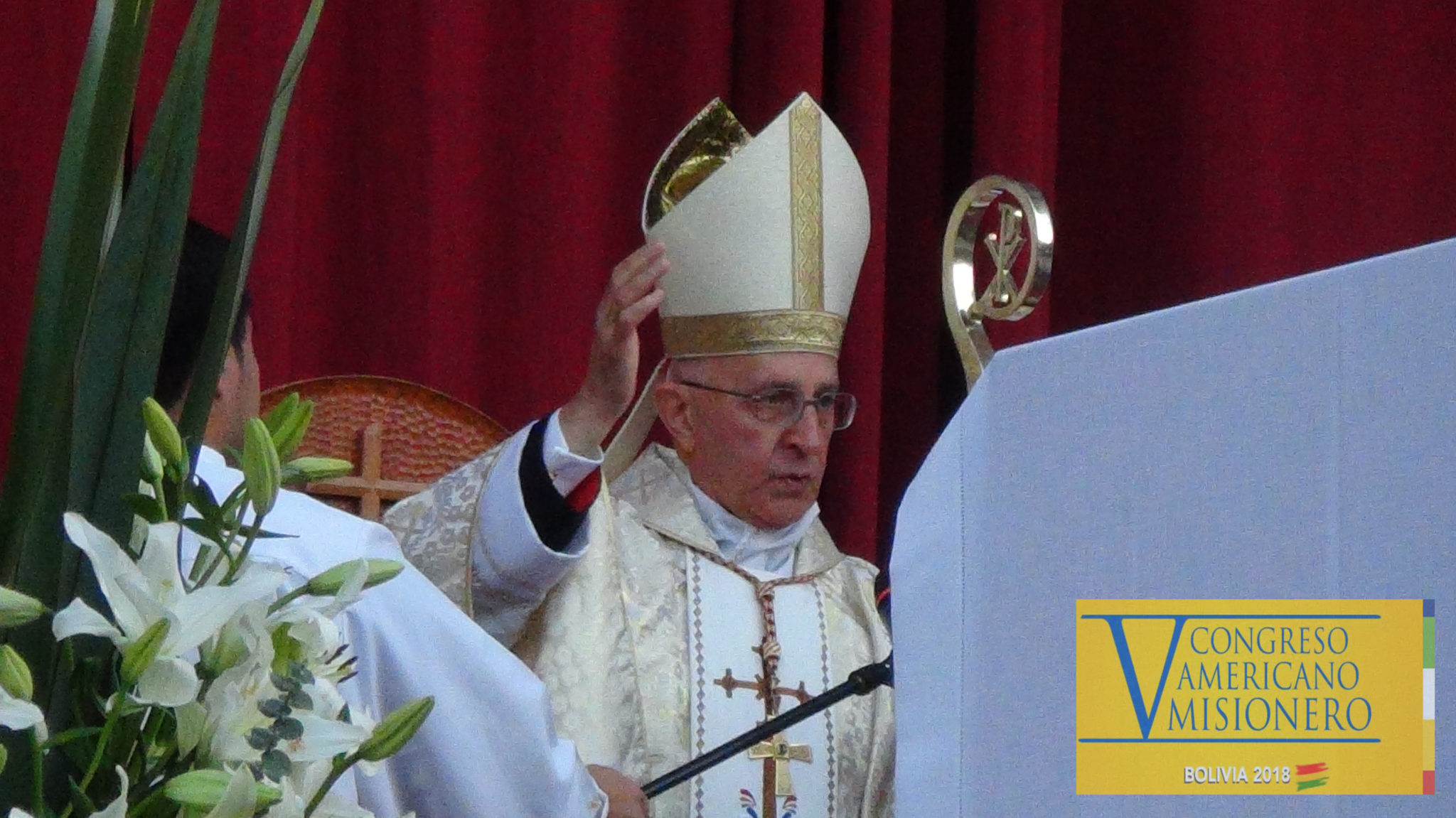 Arquidiócesis de Sucre 11.07.18//CENACOM//El Delegado del Papa Francisco, Cardenal Fernando Filoni; Prefecto de la Congregación para la Evangelizacion de los pueblos, celebró esta mañana la Eucaristía en el V Congreso Americano Misionero, que se realiza en la Ciudad de Santa Cruz.