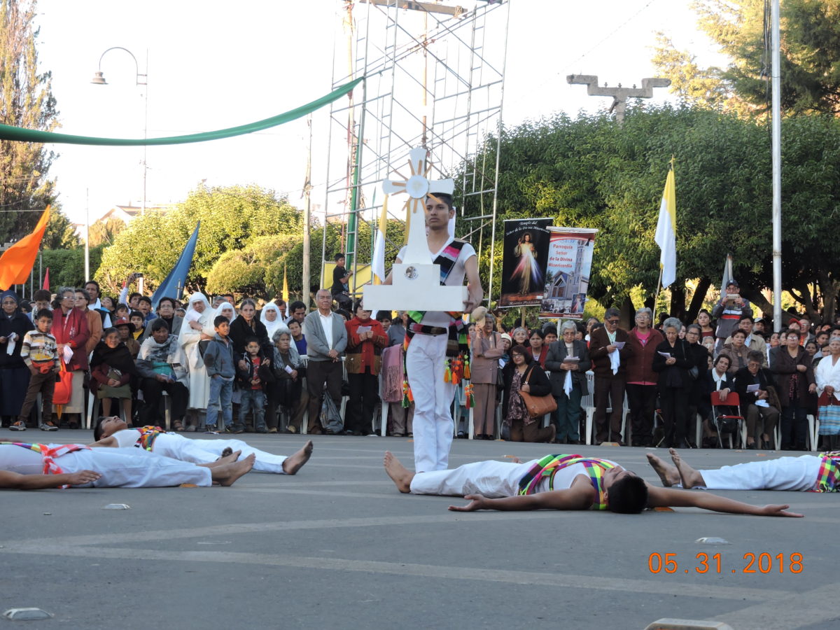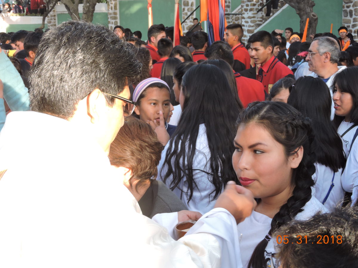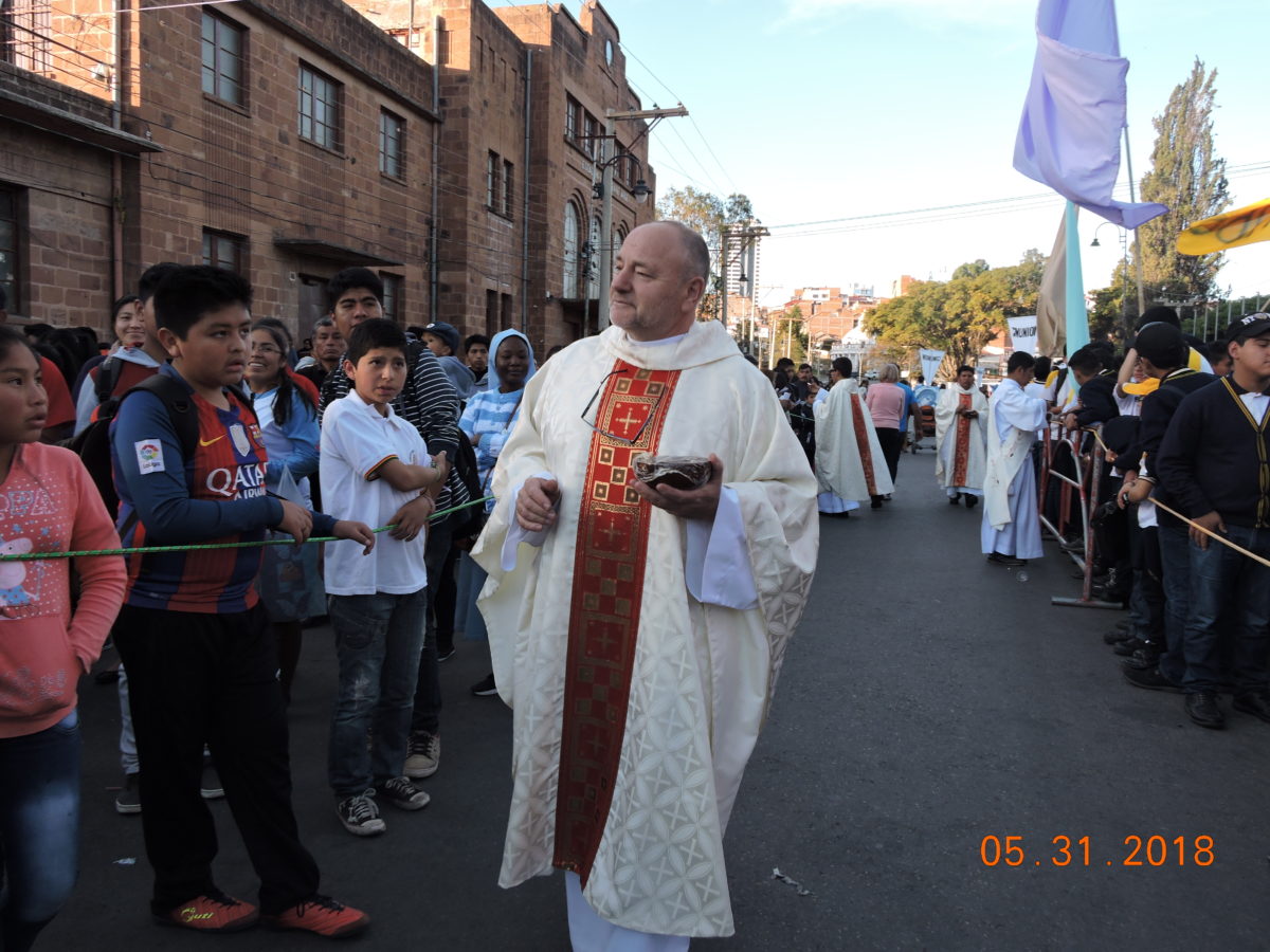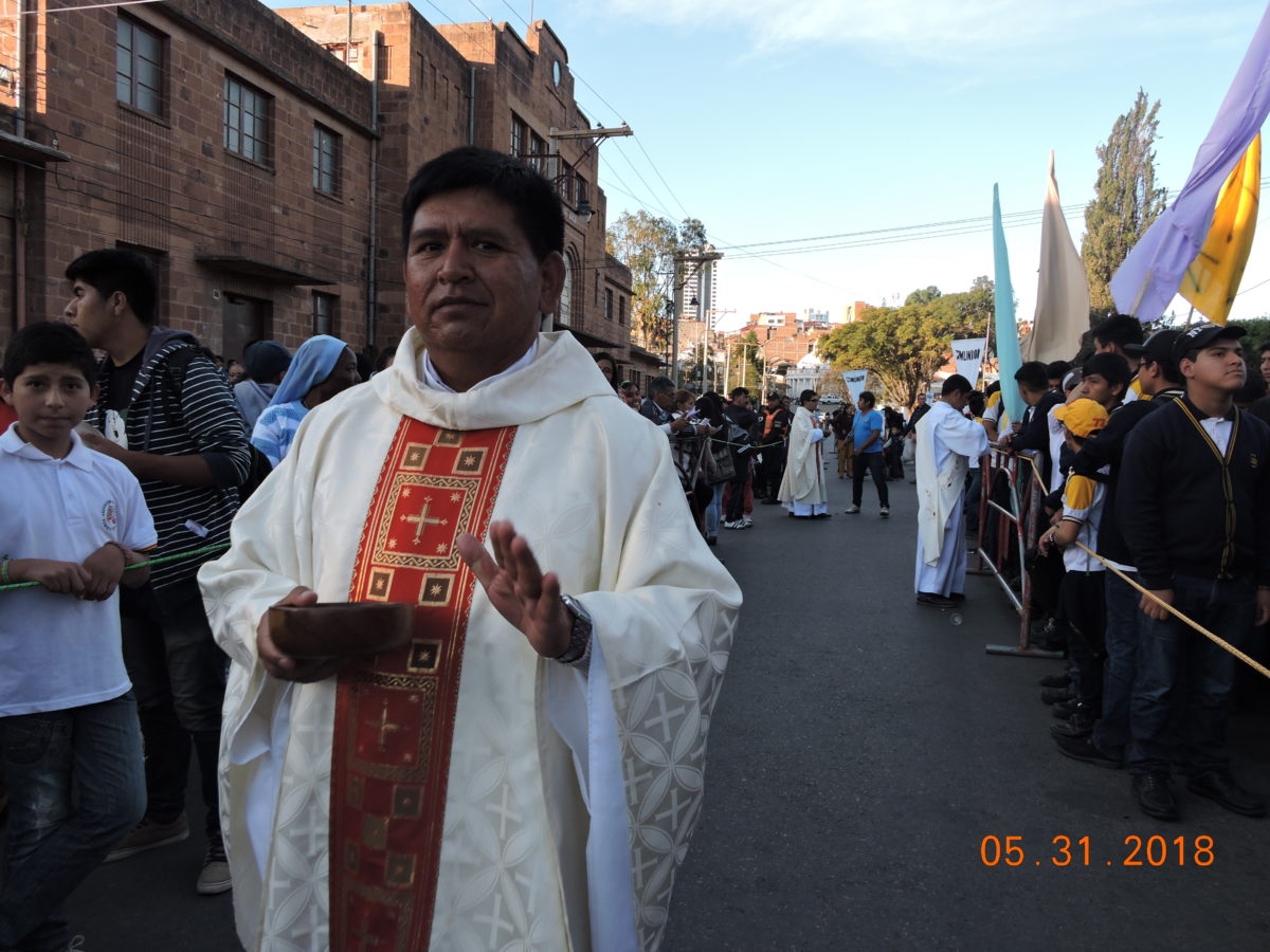 Arquidiocesis de Sucre 01.06.2018//CENACOM//La tarde de ayer jueves 31 de mayo se realizó la celebración de Corpus Christi, presidido por el Monseñor Jesús Juárez Párraga Arzobispo de Sucre, acompañado por el Obispo emérito Mons. Jesús Pérez Rodríguez, Sacerdotes, Seminaristas, Religiosos y religiosas, movimientos laicales y autoridades presentes; en la plazuela Aniceto Arce(ex estación) con una positiva respuesta en la participación de las Comunidades Parroquiales, que mostraron su fe y alegría manifestado por cantos, música, danza durante la Eucaristía.