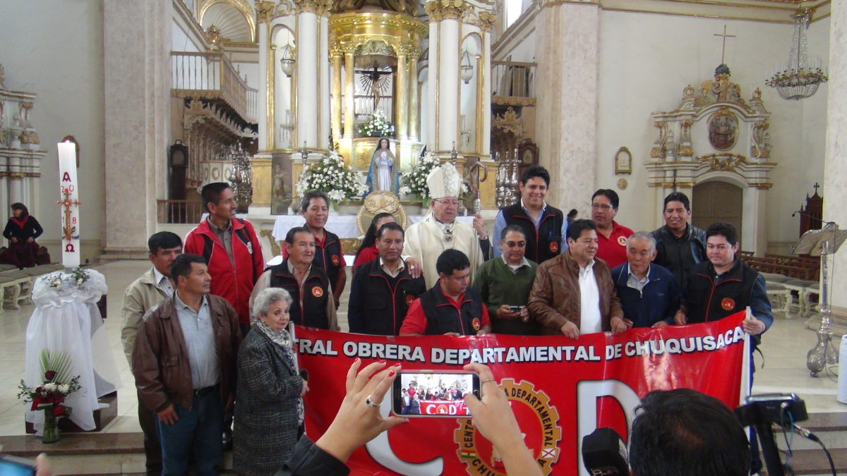 Arquidiocesis de Sucre 02.05.18//CENACOM//Con motivo de este 1 de Mayo, el Monseñor Jesús Juárez celebra la Eucaristía en conmemoración al día del trabajador, en la Catedral Metropolitana, con la asistencia de representantes de la Central Obrera Departamental (COD) y Pastoral de Trabajadores.